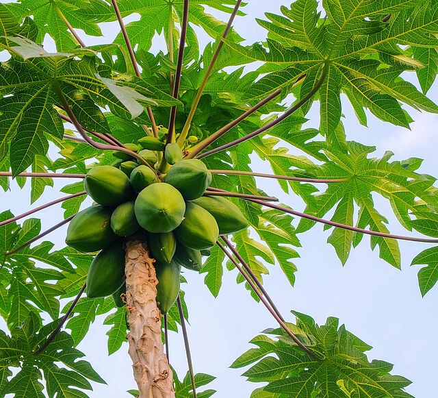 Una fruta tropical, que se conoce en distintos países por el nombre de papaya, papayón, lechosa o melón de árbol, es el fruto del Carica papaya, un árbol de la familia Caricaceae. Se cultivó por primera vez en México, pero ahora crece en la mayoría de regiones tropicales de todo el mundo. La fruta de papaya tiene una longitud de 15-45 cm y un diámetro de 10-30 cm. Su piel suave tiene un color de ámbar a naranja.
