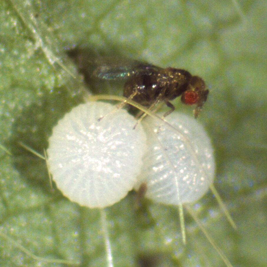 Las moscas blancas son plagas comunes que se alimentan de la savia de las plantas y transmiten enfermedades vegetales. Encarsia formosa (En-Strip) y Eretmocerus eremicus (Ercal, Enermix) son avispas parásitas conocidas por su eficacia en el control de las poblaciones de mosca blanca.