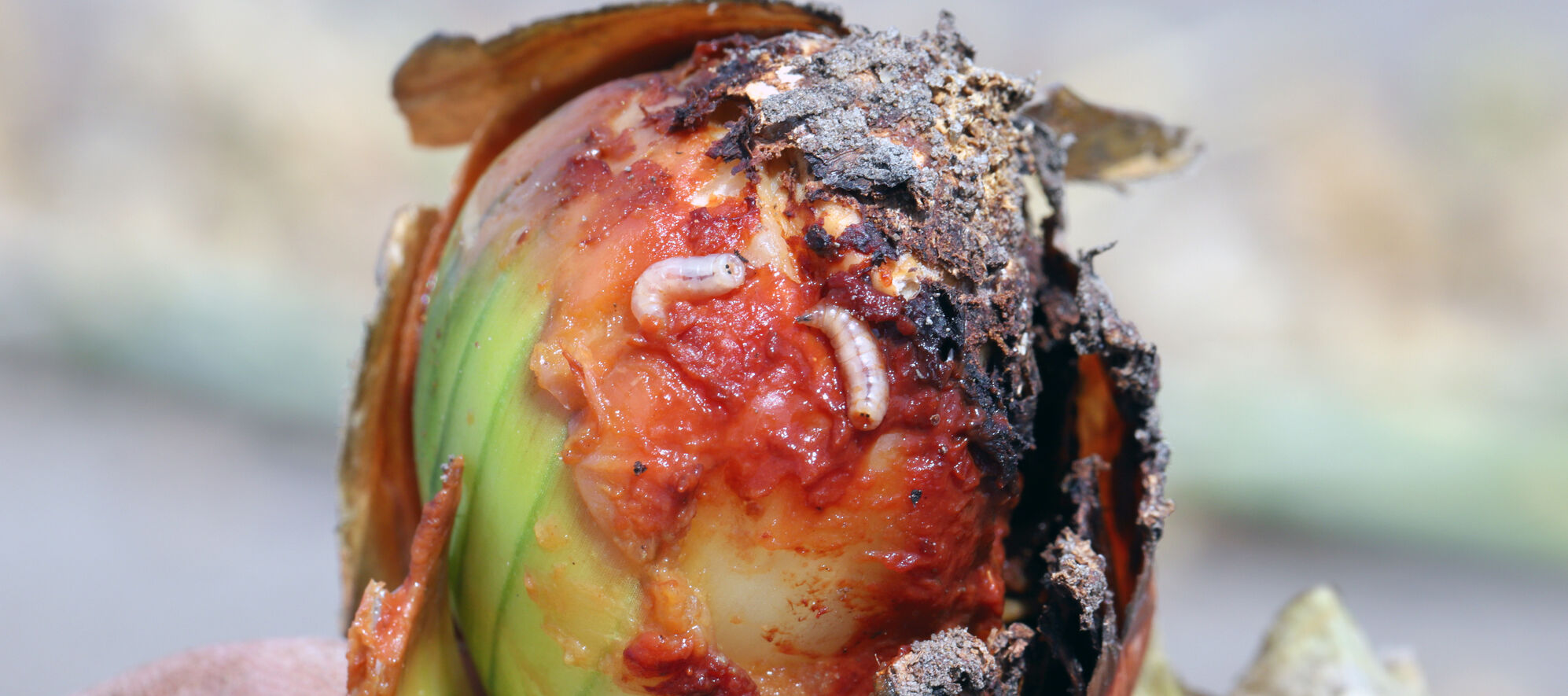 Los nematodos también pueden emplearse para controlar la mosca de la cebolla y la mosca de la semilla de la judía, plagas comunes que afectan a la cebolla y otros cultivos de bulbos. Estas moscas ponen sus huevos cerca de la base de las plantas, y las larvas resultantes, conocidas como gusanos de la cebolla, pueden causar daños importantes al hacer túneles en los bulbos y alimentarse de ellos.